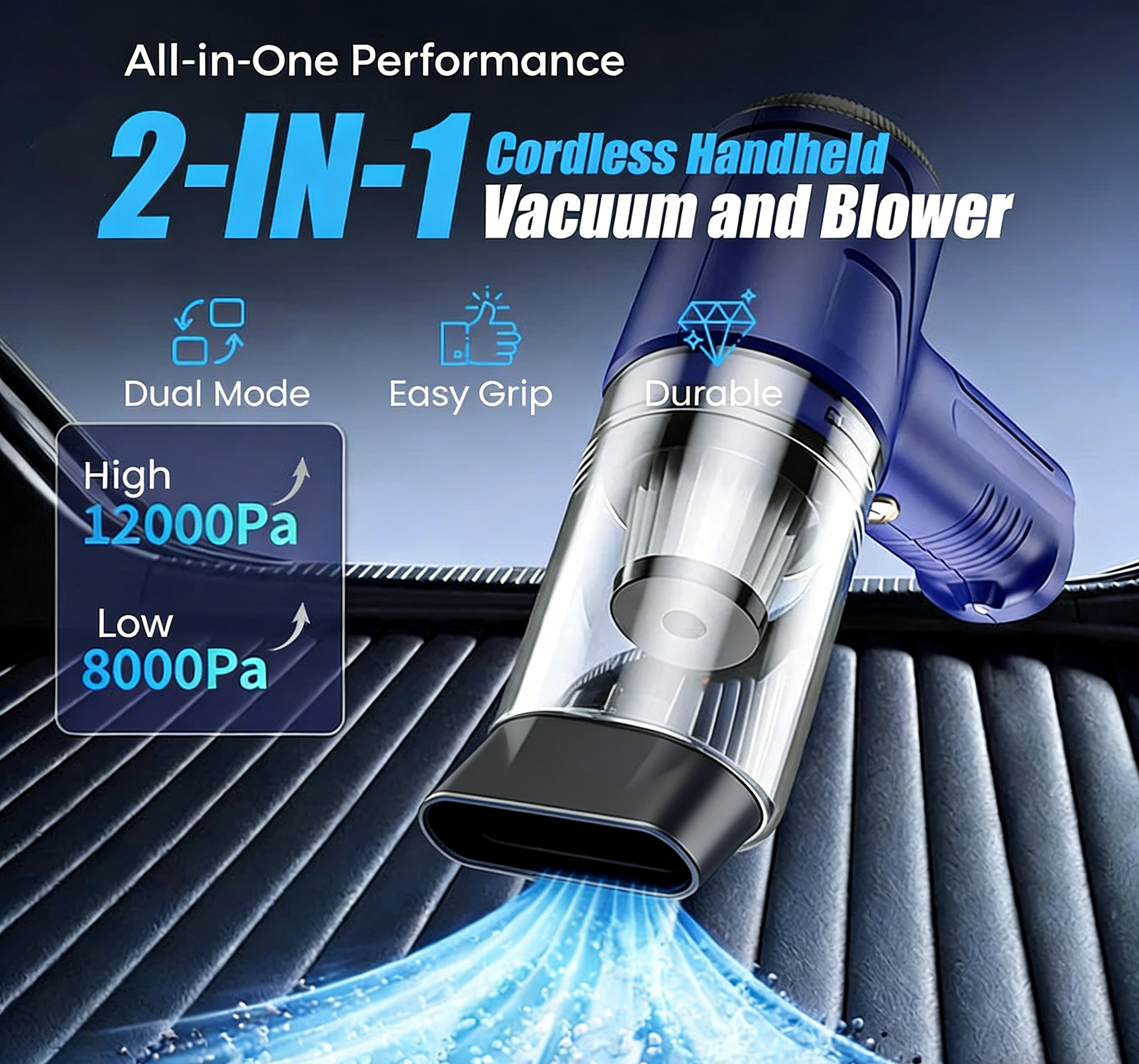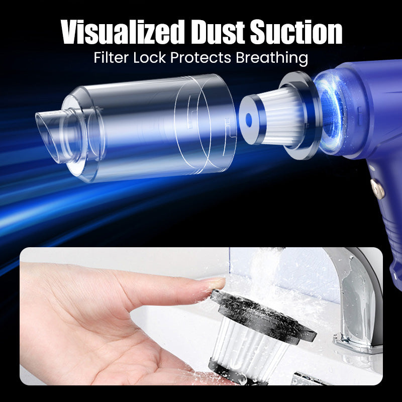 POWERFUL BRUSHLESS MOTOR – With an intense suction power of up to 12,000 Pa, the device effortlessly removes stubborn dust, pet hair, and dirt from car interiors and tight corners – for thorough and deep cleaning every time.