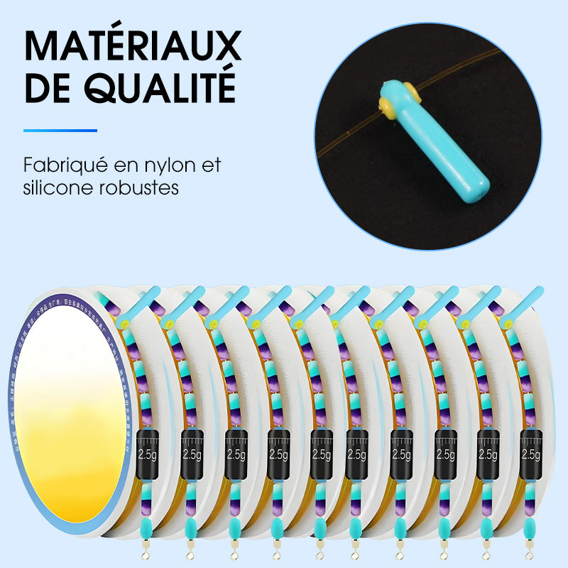 PRECISE AND EASY FLOAT ADJUSTMENT - With a soft-core scale lead and high-speed swivel, this line provides quick float adjustments. Silicone float seats ensure a secure fit, preventing float loss and enhancing fishing efficiency, ideal for competitive anglers.
